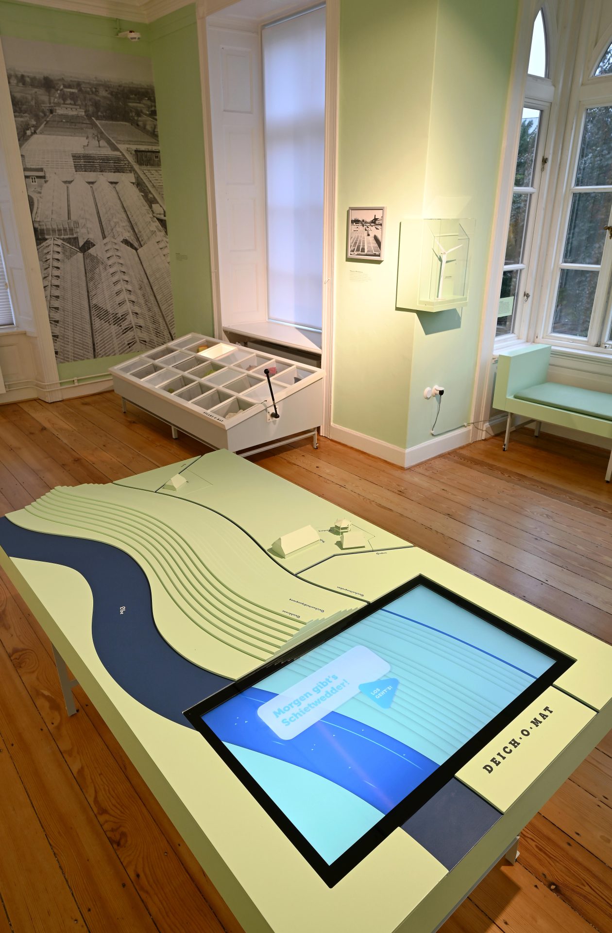Für die Bergedorfer Museumslandschaft entwickelten wir zusammen mit h neun und Graphscape den interaktiven Deichomaten zur Simulation verschiedener Szenarien am Deich: von Starkregen bis Dürre können nun vor Ort unterschiedliche Zustände spielerisch ausprobiert werden.